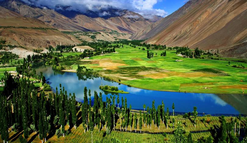 The valley is famous for Phandar Lake, trout fishing, and terraced fields surrounded by poplar trees.